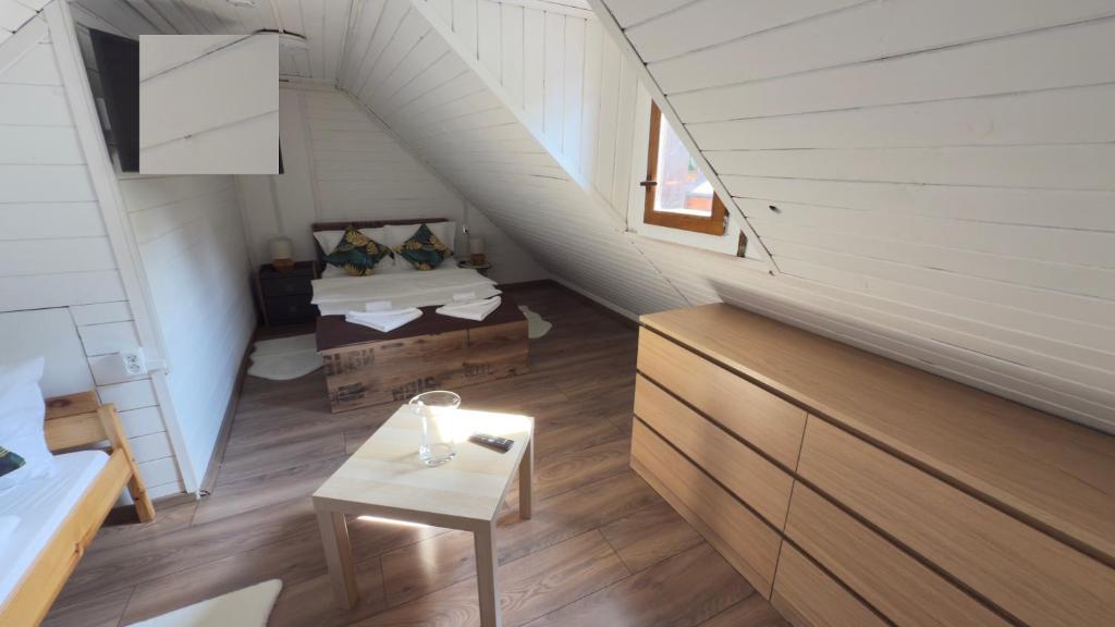Jest to domek z oddzielnym wejściem, częścią wypoczynkową oraz minibarem.